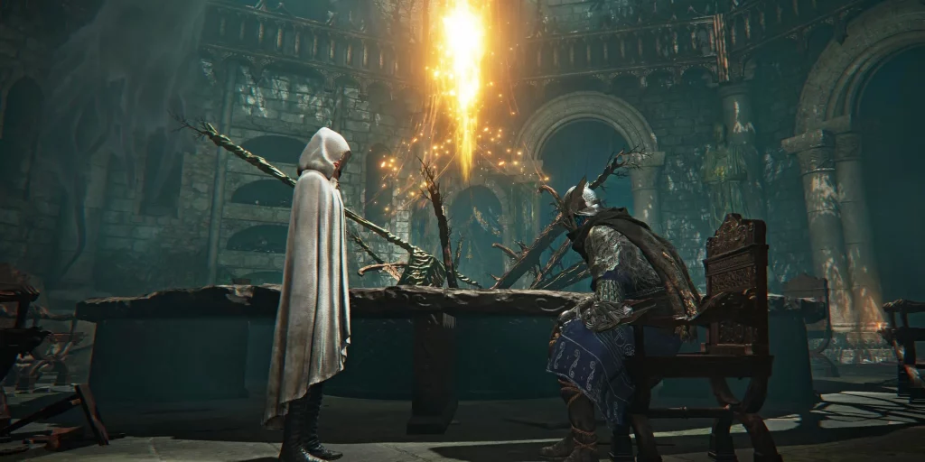 The Round Table Hold was introduced to us in Elden Ring as a “safe” space as such, well it acts pretty much the same way in Nightreign too. Here you are able to access all sorts of things from your character selection, upgrading your characters Relics, searching through the stats and lore books to better knowledge yourself with the characters you are playing as and of course changing your clothing because it would not be a souls game without a bit of fashion now would it.